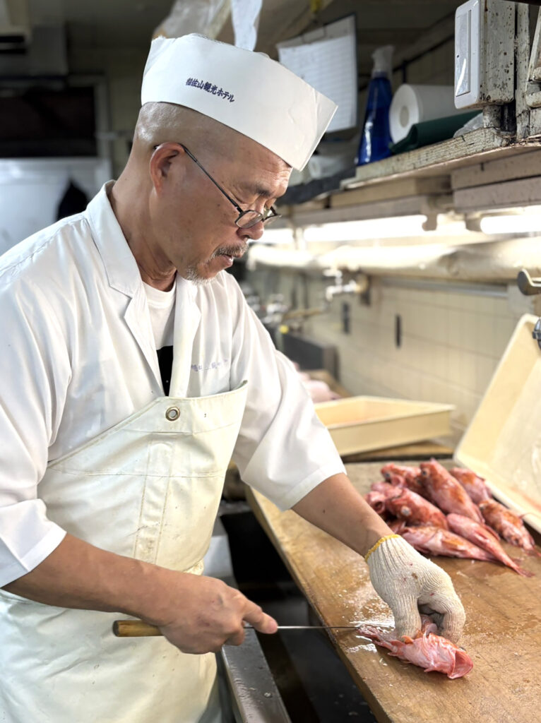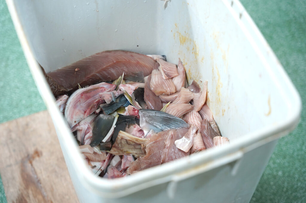 魚のあら(頭や骨、内臓など)の再利用に特に力を入れています。魚市場にあらを持ち込むと、飼料や肥料として再資源化されるんです。当ホテルでは、これまで廃棄していたあらを年間5トン以上魚市場に持ち込み、循環させています。